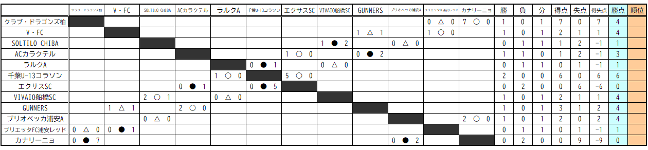 2025-2026 第16回 千葉県ユース(U-13)サッカーリーグ 星取表(1部)