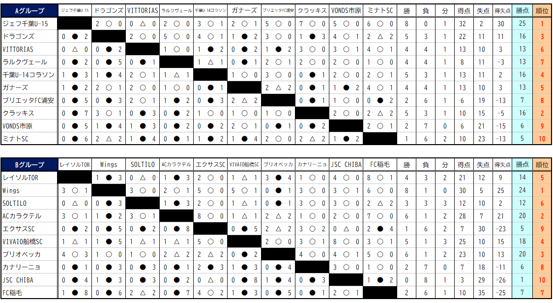 第16回千葉県クラブユース(U-15)サッカー連盟 U-14リーグ 上位リーグ